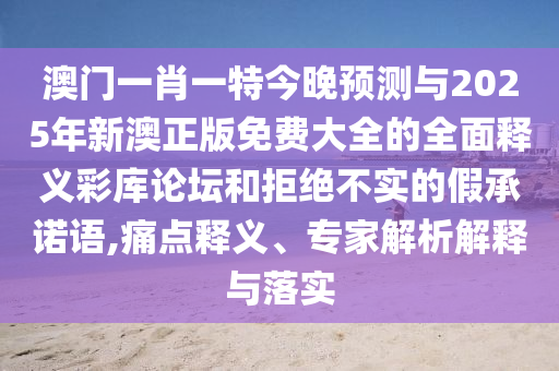 澳門一肖一特今晚預測與2025年新澳正版免費大全的全面釋義彩庫論壇:痛點釋義、專家解析解釋與落實