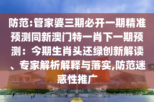 管家婆三期必開一期精準(zhǔn)預(yù)測同新澳門特一肖下一期預(yù)測:今期生肖頭還綠:創(chuàng)新解讀、專家解析解釋與落實(shí)