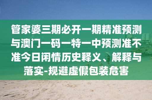 關(guān)于管家婆三期必開一期精準(zhǔn)預(yù)測與澳門一碼一特一中預(yù)測準(zhǔn)不準(zhǔn)今日閑情的探討,以及規(guī)避虛假包裝危害的相關(guān)釋義、解釋與落實