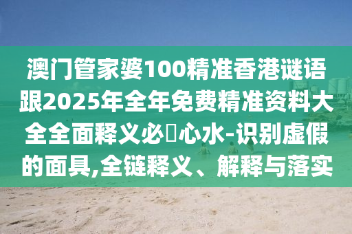 澳門管家婆100精準香港謎語與2025年全年免費精準資料大全的概念,涉及到彩票預測、娛樂游戲等方面,需要我們從多個角度進行解讀和解釋,以下是對這些概念的全面釋義與落實,以及如何識別虛假信息的面具的詳細闡述。