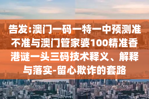 關(guān)于關(guān)鍵詞“告發(fā)”、“澳門(mén)一碼一特一中預(yù)測(cè)準(zhǔn)不準(zhǔn)”、“澳門(mén)管家婆100精準(zhǔn)香港謎一頭三碼技術(shù)”的釋義、解釋與落實(shí),以及公眾對(duì)虛假宣傳的警惕,本文將全面探討這些關(guān)鍵詞,并提醒公眾注意與之相關(guān)的欺詐套路。