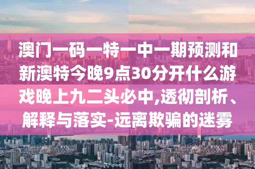 澳門一碼一特一中一期預(yù)測和新澳特今晚9點(diǎn)30分開什么游戲晚上九二頭必中的透徹剖析、解釋與落實(shí)