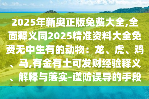 2025年新奧正版免費大全,全面釋義同2025精準資料大全免費無中生有的動物:龍、虎、雞、馬,有金有土可發(fā)財經(jīng)驗釋義、解釋與落實-謹防誤導(dǎo)的手段