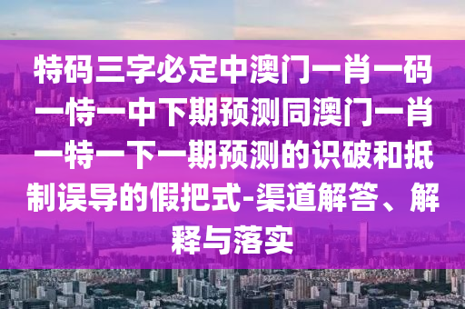 特碼三字必定中澳門一肖一碼一恃一中下期預(yù)測同澳門一肖一特一下一期預(yù)測的識破的渠道解答、解釋與落實(shí)