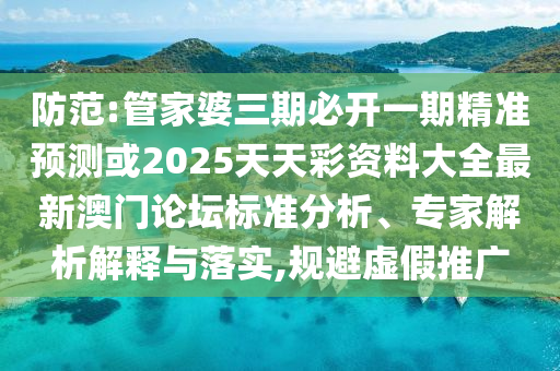 管家婆三期必開一期精準預測或2025天天彩資料大全最新澳門論壇的標準分析、專家解析解釋與落實