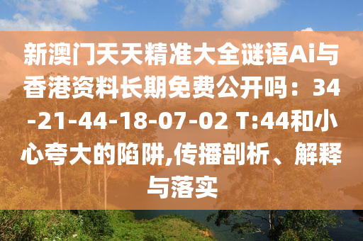 新澳門天天精準(zhǔn)大全謎語Ai與香港資料長期免費公開嗎:34-21-44-18-07-02 T:44和小心夸大的陷阱,傳播剖析、解釋與落實