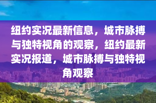 紐約,這座被譽為全球最繁華的城市之一,每時每刻都在展示著其獨特的魅力和活力,我們將從最新的實況信息出發(fā),帶您領(lǐng)略紐約的城市脈搏,并從自己的視角出發(fā),分享這座城市的獨特之處。