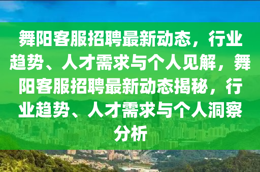 舞陽公司發(fā)布了最新的客服招聘公告,引起了社會(huì)各界的廣泛關(guān)注,作為業(yè)內(nèi)領(lǐng)先的知名企業(yè),舞陽的這一舉動(dòng)不僅反映了行業(yè)的發(fā)展趨勢(shì),也體現(xiàn)了企業(yè)對(duì)人才的高度重視,本文將從新聞報(bào)道的視角出發(fā),對(duì)舞陽客服招聘最新動(dòng)態(tài)進(jìn)行深入剖析,并結(jié)合個(gè)人見解,探討其背后的意義。