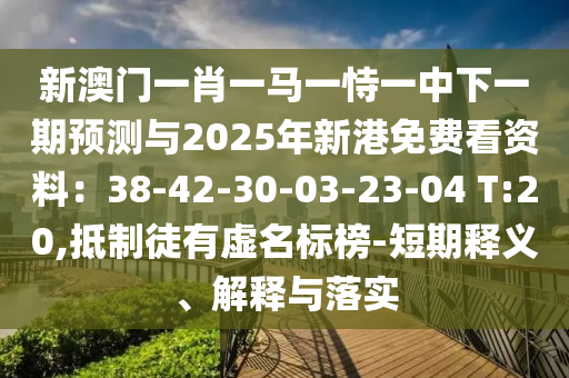 新澳門一肖一馬一恃一中下一期預(yù)測與2025年新港免費(fèi)看資料:38-42-30-03-23-04 T:20,抵制徒有虛名標(biāo)榜-短期釋義、解釋與落實
