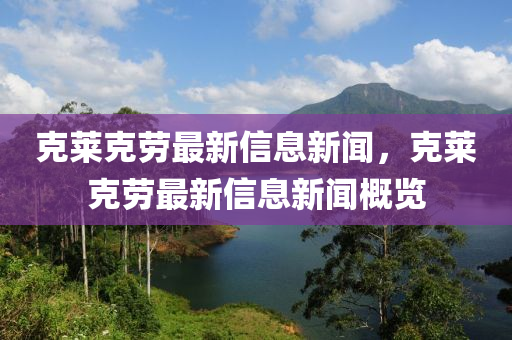 在當今信息化社會,信息的更新速度日新月異,克萊克勞作為備受關(guān)注的人物,其最新動態(tài)也引起了廣大公眾的興趣,本文將從新聞報道的視角出發(fā),結(jié)合個人見解,對克萊克勞的最新信息進行深度解析,并展望其未來發(fā)展趨勢。
