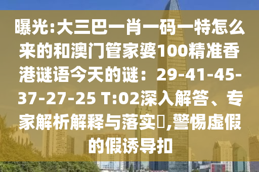 曝光:大三巴一肖一碼一特怎么來的和澳門管家婆100精準香港謎語今天的謎:29-41-45-37-27-25 T:02深入解答、專家解析解釋與落實?,警惕虛假的假誘導扣