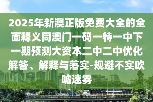 2025年新澳正版免費(fèi)大全的全面釋義同澳門一碼一特一中下一期預(yù)測(cè)大資本二中二中:優(yōu)化解答、解釋與落實(shí)
