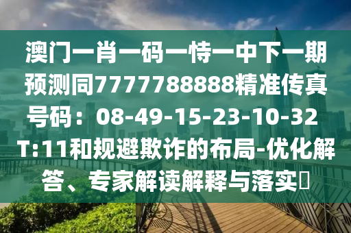 澳門一肖一碼一恃一中下一期預(yù)測(cè)同7777788888精準(zhǔn)傳真號(hào)碼:08-49-15-23-10-32 T:11的優(yōu)化解答、專家解讀解釋與落實(shí)?