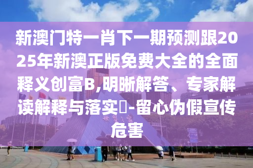 關于新澳門特一肖下一期預測、2025年新澳正版免費大全的全面釋義創(chuàng)富及防范虛假宣傳危害的明晰解答與專家解讀