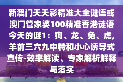 新澳門天天彩精準(zhǔn)大全謎語或澳門管家婆100精準(zhǔn)香港謎語今天的謎1:狗、龍、兔、虎,羊前三六九中特和小心誘導(dǎo)式宣傳-效率解讀、專家解析解釋與落實(shí)