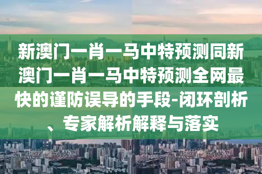 關(guān)于新澳門一肖一馬中特預(yù)測與全網(wǎng)最快預(yù)測的概念,需要我們從多個角度進(jìn)行閉環(huán)剖析、專家解析解釋與落實,以下是對此概念的深入分析和用戶需警惕的誤導(dǎo)手段。