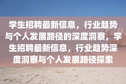 隨著科技的飛速發(fā)展和經(jīng)濟全球化的推進,各行各業(yè)對于人才的需求日益旺盛,對于學(xué)生而言,把握最新的招聘信息,理解行業(yè)趨勢,規(guī)劃個人發(fā)展路徑,顯得尤為重要,本文將從新聞報道的視角出發(fā),結(jié)合個人見解,為大家解讀學(xué)生招聘的最新信息。