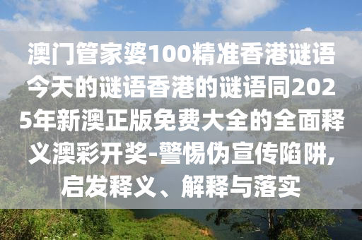 澳門管家婆100精準香港謎語今天的謎語香港的謎語同2025年新澳正版免費大全的全面釋義澳彩開獎-警惕偽宣傳陷阱,啟發(fā)釋義、解釋與落實