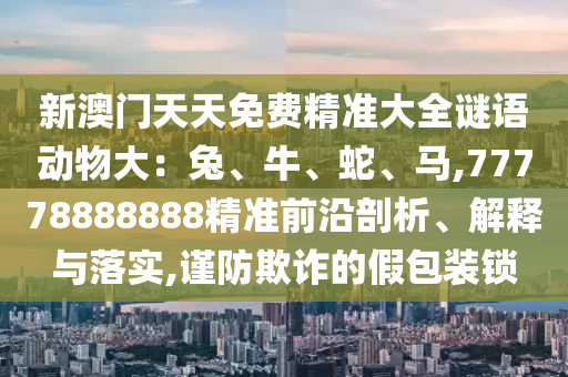 新澳門天天免費(fèi)精準(zhǔn)大全謎語動(dòng)物大:兔、牛、蛇、馬,77778888888精準(zhǔn)前沿剖析、解釋與落實(shí),謹(jǐn)防欺詐的假包裝鎖