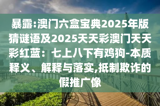 暴露:澳門六盒寶典2025年版猜謎語(yǔ)及2025天天彩澳門天天彩紅藍(lán):七上八下有雞狗-本質(zhì)釋義、解釋與落實(shí),抵制欺詐的假推廣像