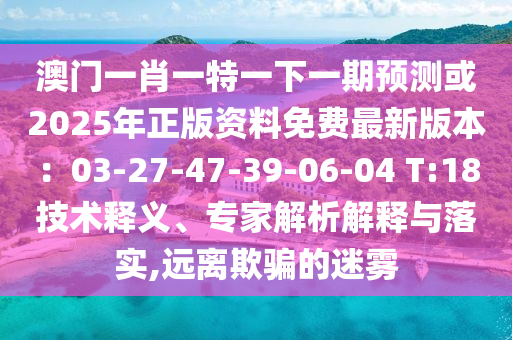 澳門一肖一特一下一期預(yù)測(cè)或2025年正版資料免費(fèi)最新版本:03-27-47-39-06-04 T:18技術(shù)釋義、專家解析解釋與落實(shí),遠(yuǎn)離欺騙的迷霧