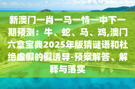 新澳門一肖一馬一恃一中下一期預(yù)測:牛、蛇、馬、雞,澳門六盒寶典2025年版猜謎語的預(yù)案解答、解釋與落實(shí)