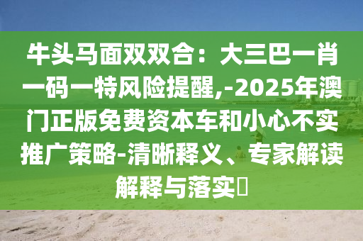 牛頭馬面雙雙合:大三巴一肖一碼一特風(fēng)險提醒,-2025年澳門正版免費(fèi)資本車的清晰釋義、專家解讀解釋與落實(shí)?